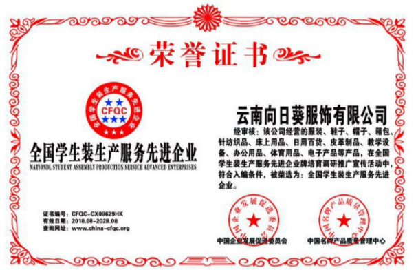 云南向日葵服飾有限公司成立于 1989 年,是具有 35年發(fā)展歷史的老牌服裝企業(yè)。原名“白玫亞達(dá)服裝廠(chǎng)”,因企業(yè)發(fā)展需要,現(xiàn)更名為“云南向日葵服飾有限公司”。云南向日葵服飾有限公司是國(guó)內(nèi)專(zhuān)業(yè)生產(chǎn)職業(yè)服裝經(jīng)營(yíng)企業(yè),是浙商在昆的知名企業(yè), 也是溫州商會(huì)常務(wù)副會(huì)長(zhǎng)單位。公司業(yè)務(wù)涉及公、檢、法、學(xué)校、交通、銀行等單位。公司從家族制企業(yè)起步,全面完成內(nèi)部職工持股改造,按照現(xiàn)代企業(yè)制度要求規(guī)范經(jīng)營(yíng),獲得業(yè)界好評(píng)和客戶(hù)信賴(lài)。