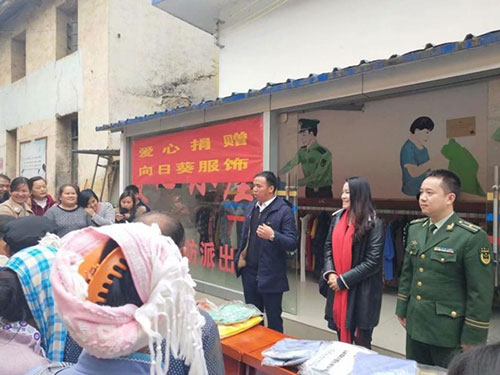 2018年11月21日,黃奇輝帶領(lǐng)向日葵愛心團(tuán)隊(duì)來到位于文山富寧縣田蓬鎮(zhèn)郎恒鄉(xiāng)的郎恒邊防派出所,給那里的老人和孩子們送去了價值20萬元的兩千套衣服。